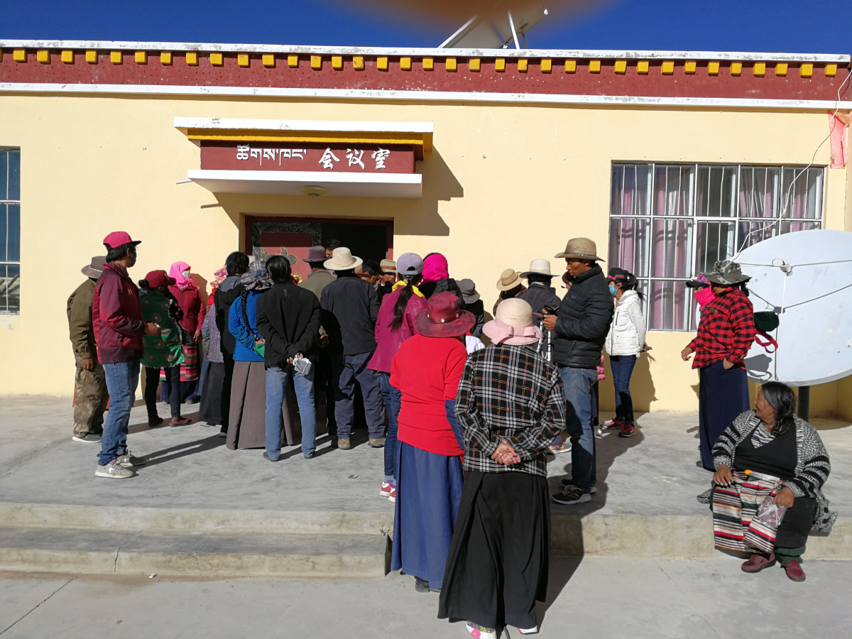 ●達革吉縣 · 革吉鎮 · 會議室外等候篩查的群眾