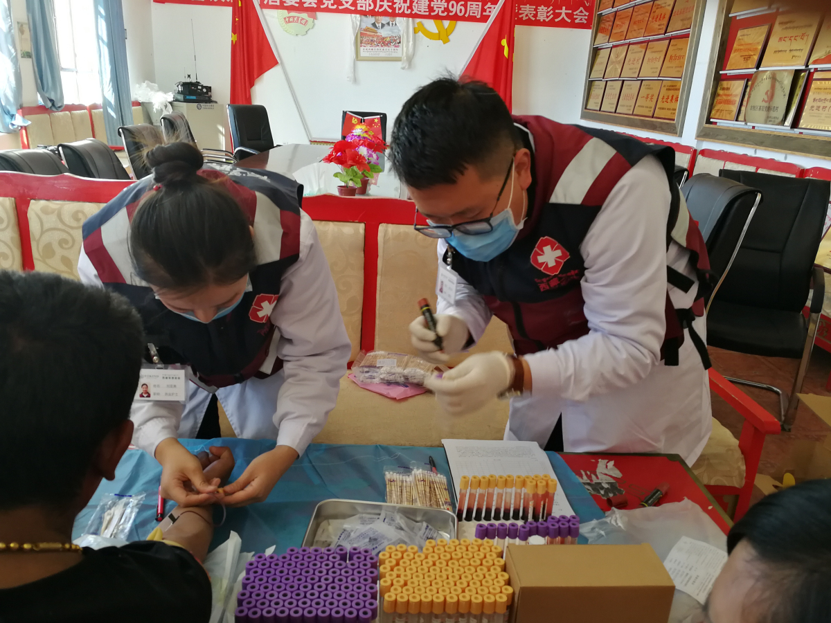 30歲出頭的劉亞美護士受到歲月的眷顧,雖然經常到條件艱苦的地區,卻依然存有小姑娘清秀的臉龐,劉護士工作極其認真,操作技能非常嫻熟,目前我還沒有看到過她扎針失敗的案例,群眾還用藏語夸她,人長得美,扎針一點不疼。劉亞美護士家里還有一個5歲的男孩,在四川老家,爺爺在照顧,在交談中我能從她的語言里感受到,遠隔千山萬水的思念,當有抽血哇哇大哭的小朋友時,她總是溫柔地摸著他的小臉柔聲細語地安慰,對孩子細致的關愛,更展現了作為一位偉大母親天性。
