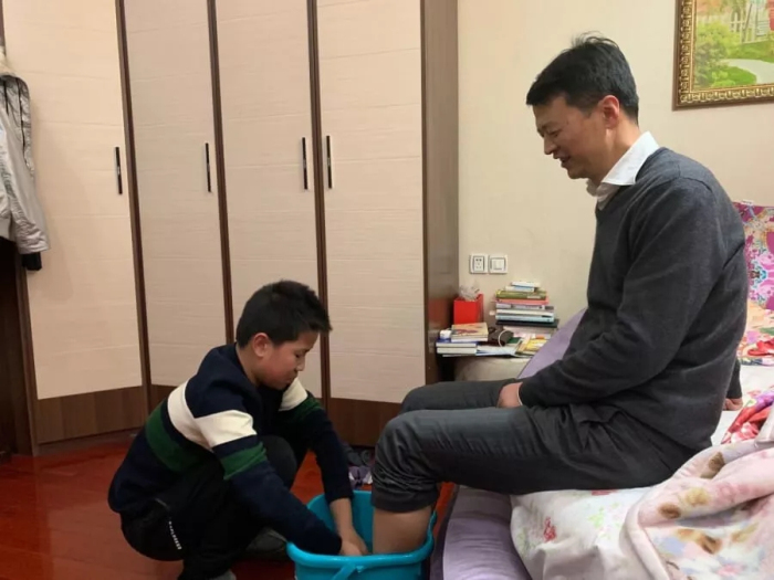 每逢過節回家,王斌和劉瀟瀟到家后第一件事就是給自己的父母打一盆熱水,為父母洗腳,在孩子的面前以身作則、言傳身教。