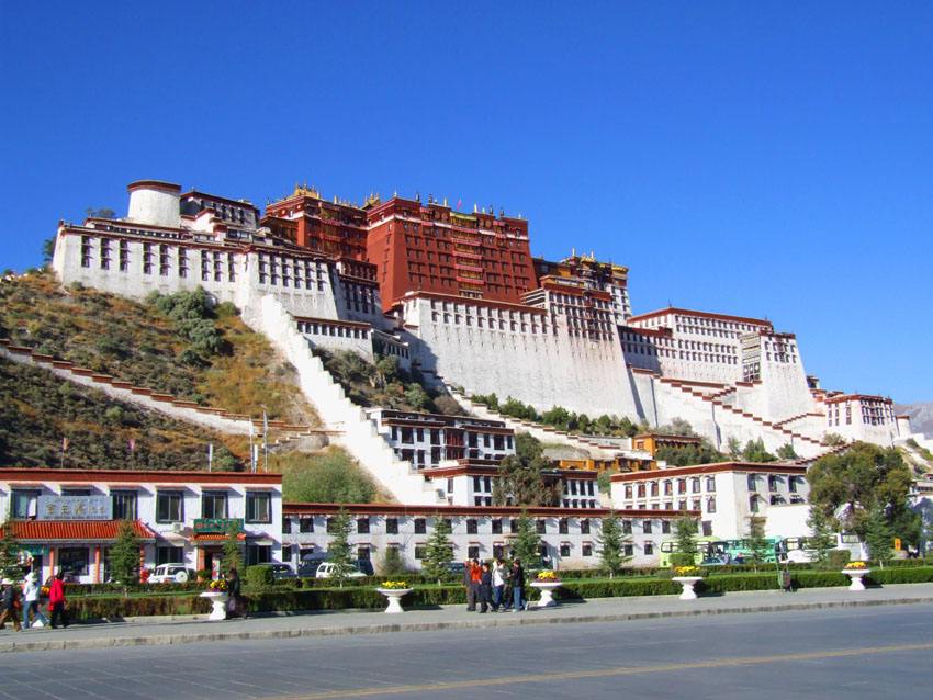 布達(dá)拉宮位于拉薩市紅山之上,最初為吐蕃王朝贊普松贊干布為迎娶尺尊公主和文成公主而興建。1645年(清順治二年)清朝屬國和碩特汗國時期護(hù)法王固始汗和格魯派攝政者索南群培重建布達(dá)拉宮之后,成為歷代達(dá)賴?yán)锒瑢m居所,以及重大宗教和政治儀式舉辦地,也是供奉歷世達(dá)賴?yán)镬`塔之地,舊時與駐藏大臣衙門共為統(tǒng)治中心。今天的布達(dá)拉宮已是世界聞名,其文化價值無法估量。